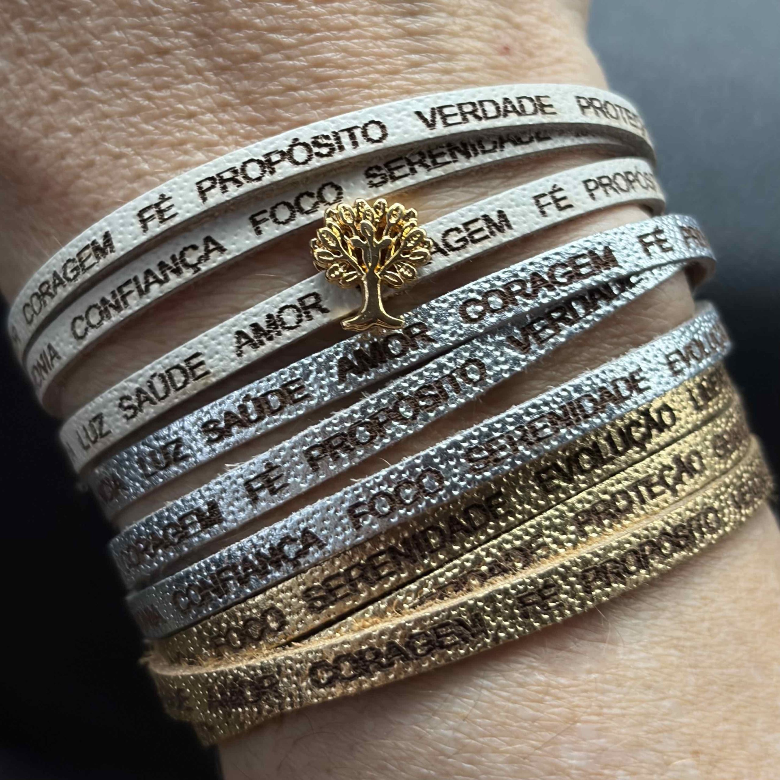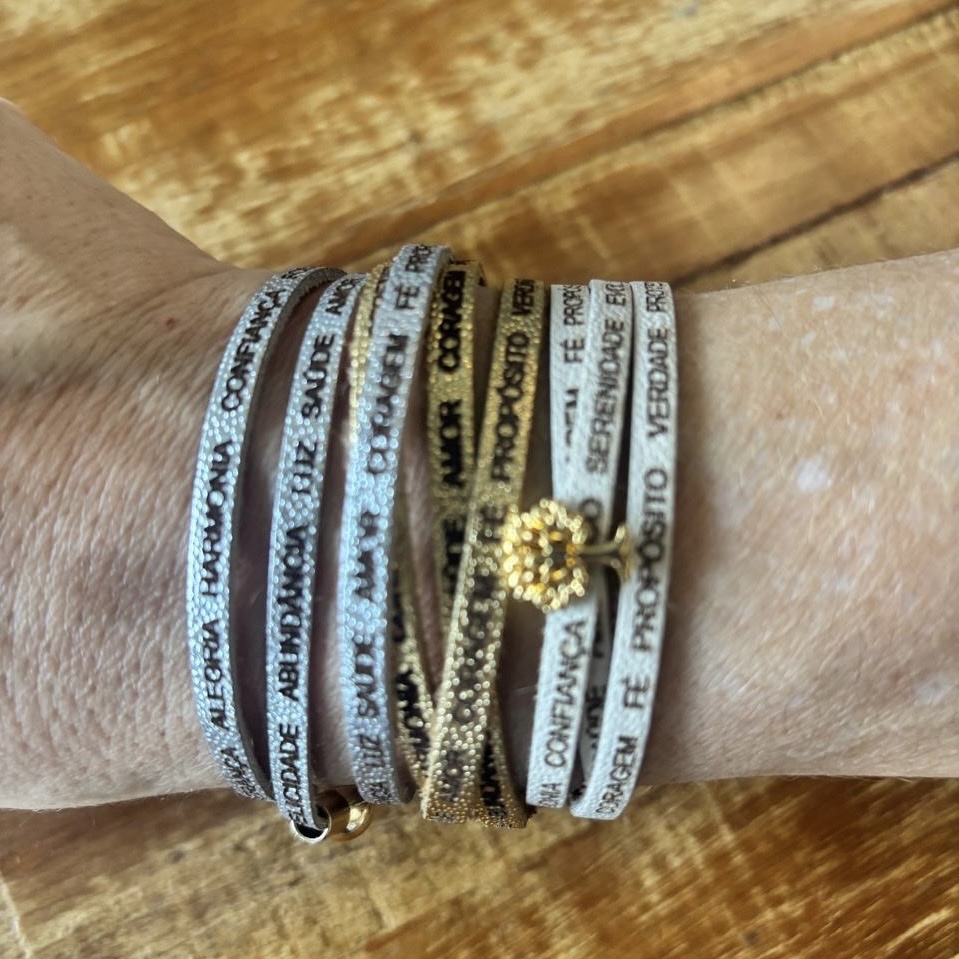 Gravadas em cada detalhe, ela carrega palavras que representam tudo aquilo que desejamos cultivar todos os dias: